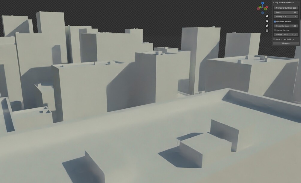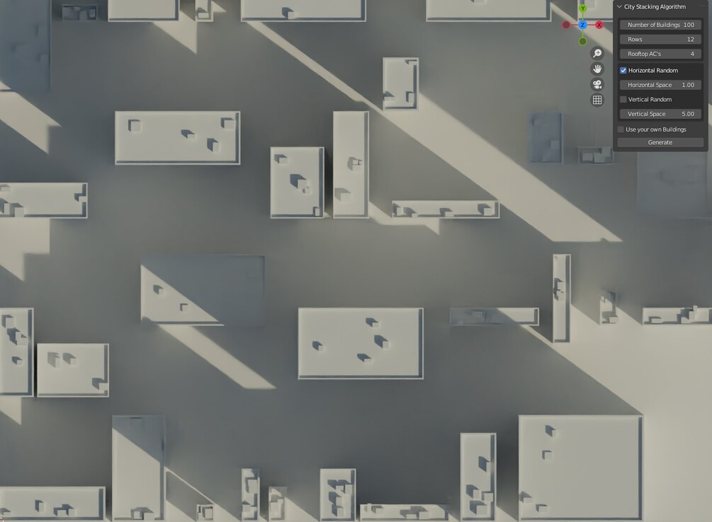 Check out my latest addon BuildingBlocks Quickly generate super low poly city buildings with a more realistic approach. Bin Stacking Algorithm lays the buildings as close together as possible given a Horizontal and Vertical spacing.